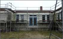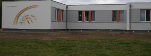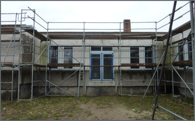 Der stehengebliebene Teil der alten Schule wurde um-und ausgebaut, Es erfolgte der Anbau des großen Saales. In der Bauphase gabe es einige Schwierigkeiten und auch Behördenentscheidungen zu überwinden.