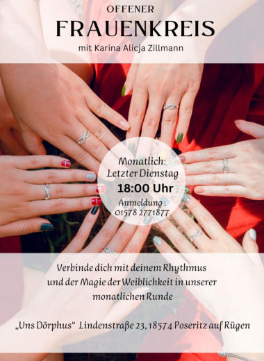 Raumvermietung für evtl. eigene Veranstaltungen oder Familienfeiern, sowie andere Auskünfte unter:Dirk Schröder, Bürgermeister Tel. 0171 7455000„Uns Dörphus“ Lindenstraße 23, 18574 Poseritz auf Rügen